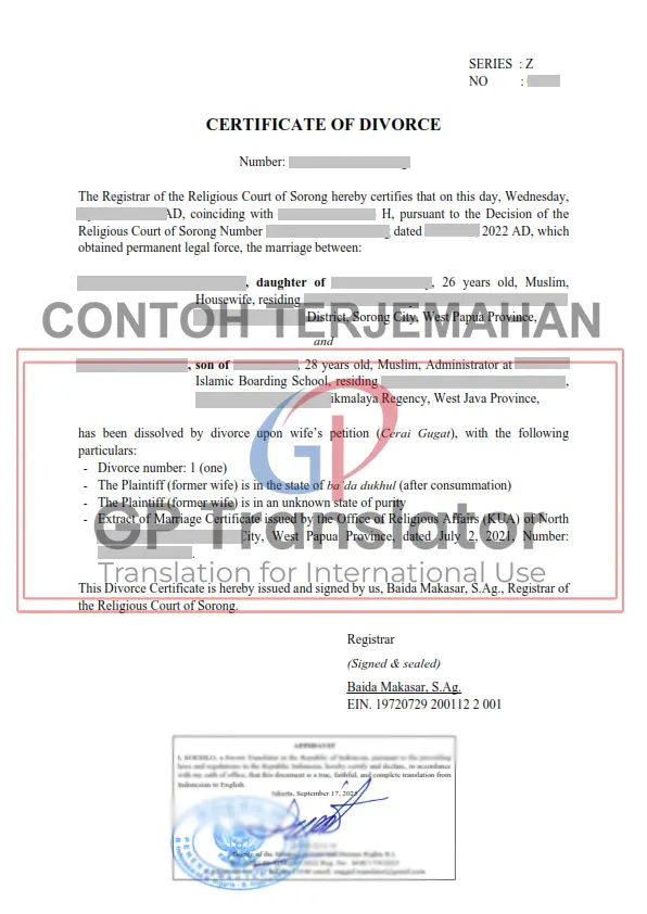 - Jasa Penerjemah Akta Cerai